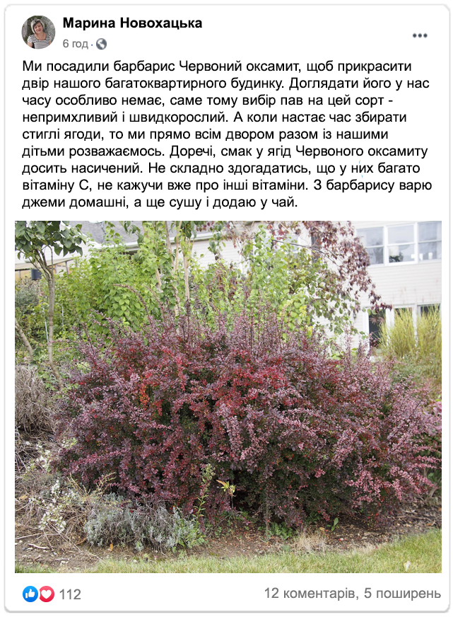 Садівники діляться відгуками на барбарис сорту «Червоний оксамит»