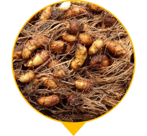“Лумарс” — це рослина, що під землею формує дрібні їстівні бульби з природною солодкістю та легким горіховим смаком. Ідеальна заміна горіхам не викликає алергії! Вони схожі на маленькі корисні горішки, які можна їсти сирими, підсушеними, додавати в йогурт, каші, смузі або перемелювати на солодке “борошно” для корисних десертів. Це натуральний продукт без хімії, який багатий на клітковину та енергію.