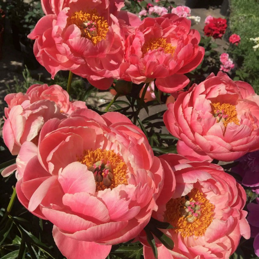 На повному сонці півонії змінюють колір — з коралового до насиченого жовтого.