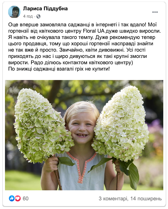 Клієнти діляться відгуками про гортензії від Floral UA