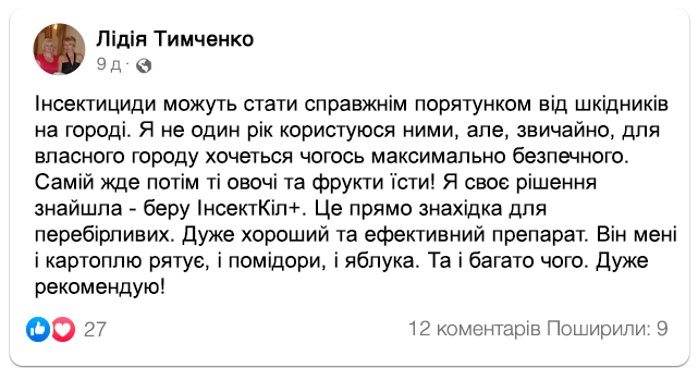 Важливо, що в плодах та овочах "ІнсектКіл+” не накопичується.