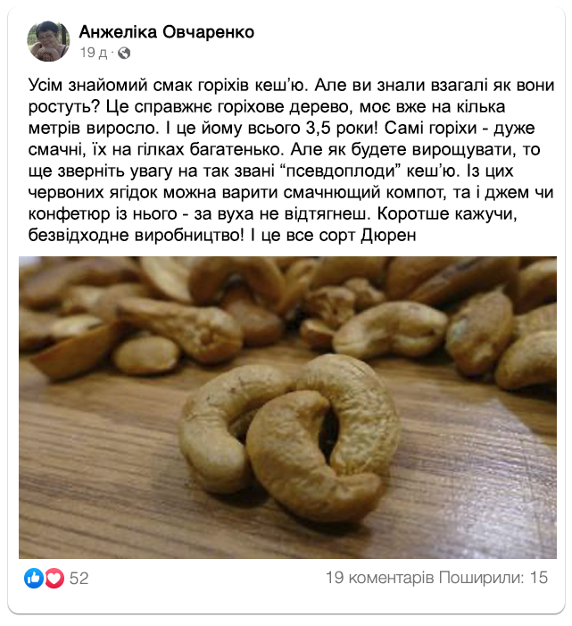 Кешʼю Дюрен: вирощувати не складніше, ніж волоський горіх