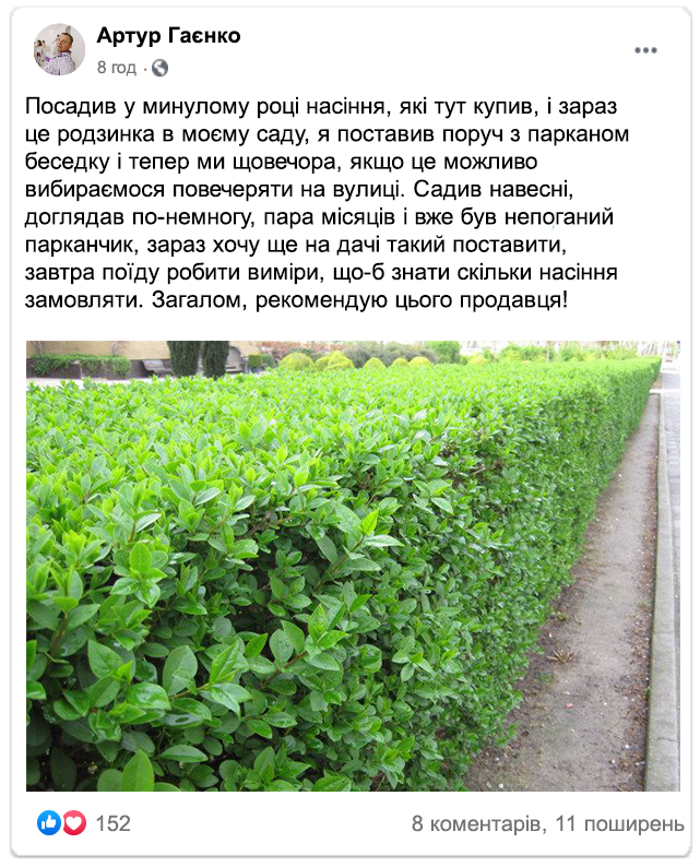 Насіння живої вічнозеленої огорожі