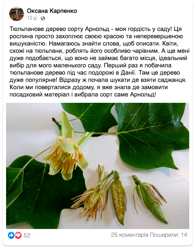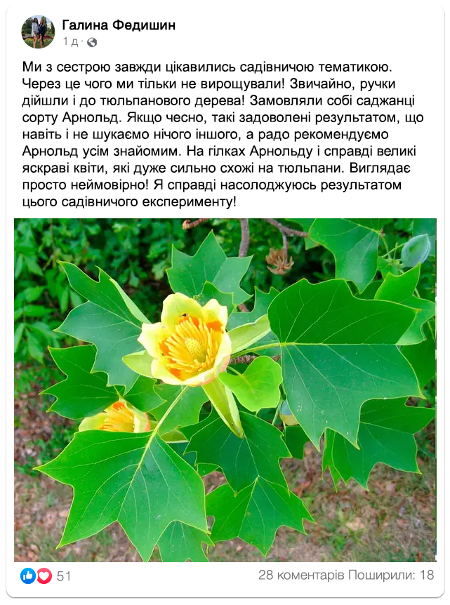 Замовляйте саджанці тюльпанового дерева “Арнольд” просто зараз: